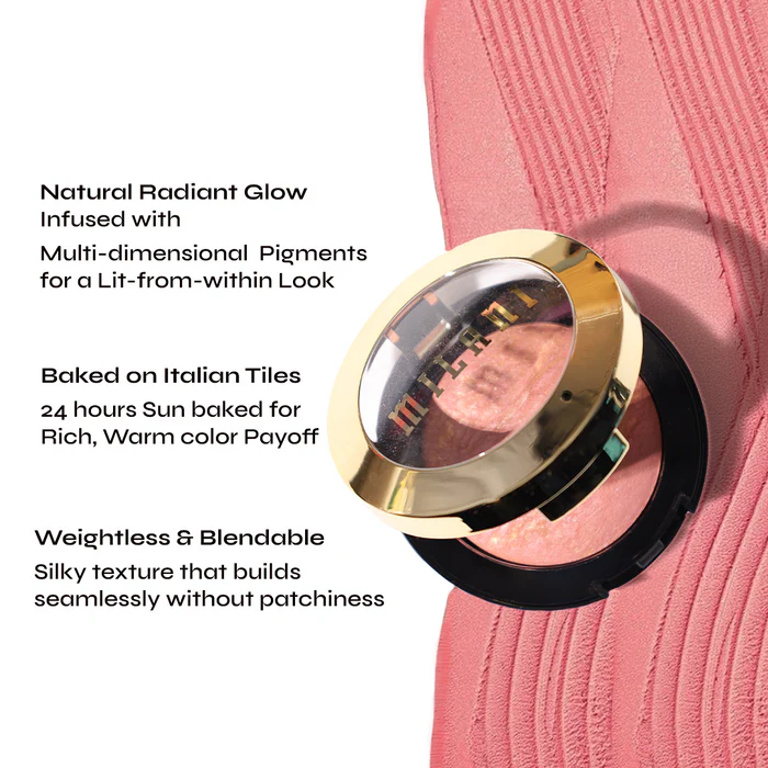 Meet the Iconic, every popular Baked Blush. From Luminoso blush to brilliant Bella Rosa, from the new Petal Primavera shade to the classic Berry Amore - these intensely pigmented, highly buildable blushes feature satin and shimmery shades that work for every skin tone. Yes, these blushes really are baked - each one has been sun baked on Italian terracotta tiles to give your skin a warm finish and radiance that looks striking and natural. These statement-making peach and rose blush shades will give you a captivating flush of bold color. Shape, contour and highlight your best features to get that glam glow.